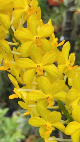 Asco Ong Vàng là giống lan Asco nổi bật với sắc vàng tươi rực rỡ, điểm lưỡi cam như hình ảnh chú ong nhỏ đang đậu trên cánh hoa. Màu hoa sáng, form chùm dày giúp cây luôn nổi bật, mang đến cảm giác tươi mới, tràn đầy năng lượng cho không gian trưng bày.